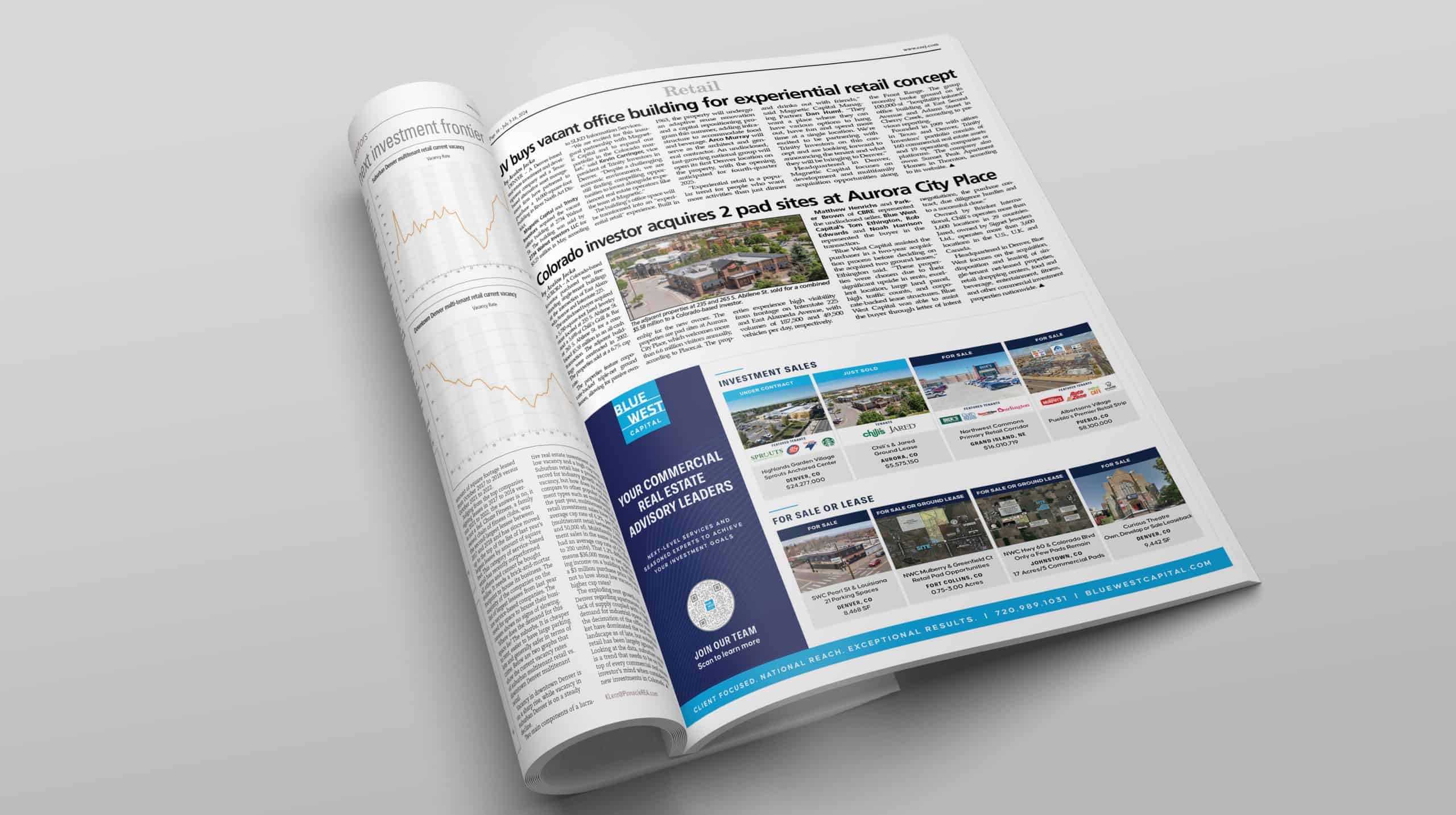 Headquartered in Denver, Blue West focuses on the acquisition, disposition and leasing of single-tenant net-leased properties, retail shopping centers, food and beverage, entertainment, fitness, and other commercial investment properties nationwide.