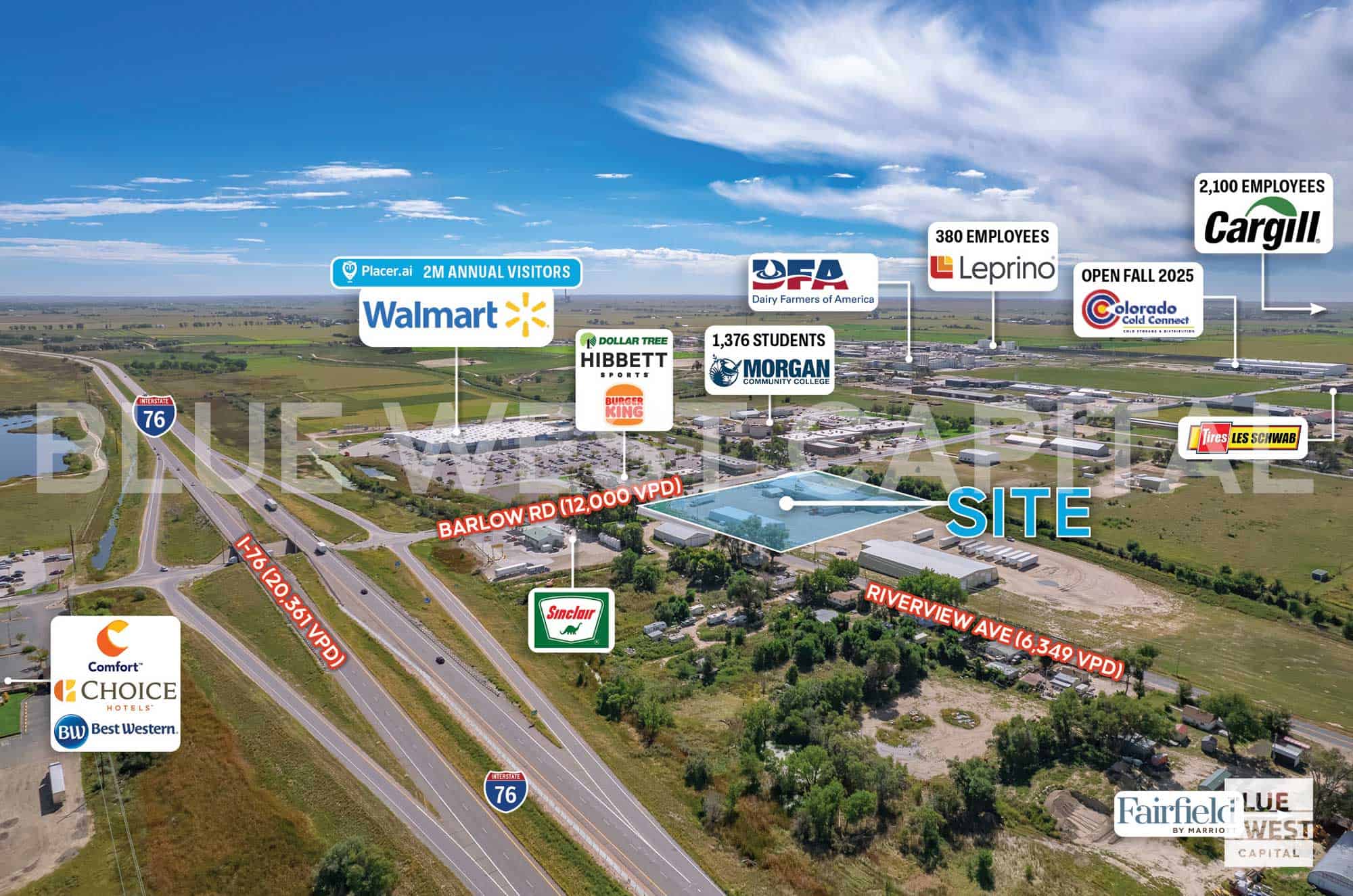 Blue West Capital is pleased to offer 4.36 acres for ground lease with a flexible demising plan in Fort Morgan, CO. Positioned along Interstate 76, the property benefits from easy regional access and high visibility at a signalized intersection with multiple full-access curb cuts, creating a prime development opportunity.