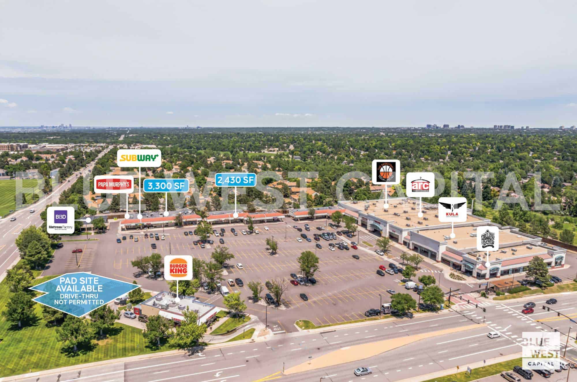 Blue West Capital is pleased to present inline retail space and a prime pad site at the high-traffic intersection of Dry Creek Road and University Boulevard. This center offers excellent visibility and strong co-tenancy with national brands including King Soopers, Starbucks, Chipotle, and Burger King. The landlord has actively leased nearly 50,000 square feet in the past year and is motivated to make deals. Opportunities include a turnkey salon space and a prime pad site with electric signage, ideal for medical, financial, and service-oriented retail users (no drive-thru permitted). Ideal for tenants seeking a high-exposure location in a proven retail corridor.