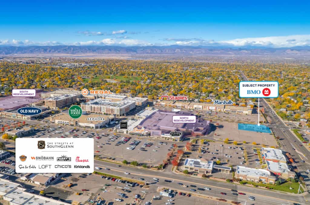 DENVER, CO – [February 23, 2026] – Blue West Capital is pleased to announce the sale of a single-tenant BMO Bank at The Streets at SouthGlenn — one of the Denver MSA’s most prominent lifestyle destinations — located in Centennial, CO. The property sold for $2,800,000 at an undisclosed cap rate (contact broker).